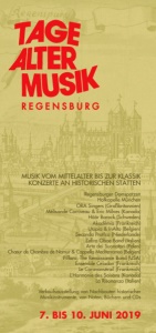 MUSIK VOM MITTELALTER BIS ZUR KLASSIK KONZERTE AN HISTORISCHEN STÄTTEN Regensburger Domspatzen Hofkapelle München ORA Singers (Großbritannien) Mélisande Corriveau & Eric Milnes (Kanada) Höör Barock (Schweden) Akadêmia (Frankreich) Utopia & InAlto (Belgien) Seconda Prat!ca (Niederlande) Zefiro Oboe Band (Italien) Arte dei Suonatori (Polen) Chœur de Chambre de Namur & Cappella Mediterranea (Belgien) Piffaro, The Renaissance Band (USA) Ensemble Céladon (Frankreich) Le Caravansérail (Frankreich) L’Harmonie des Saisons (Kanada) La Risonanza (Italien) Verkaufsausstellung von Nachbauten historischer Musikinstrumente, von Noten, Büchern und CDs 7. BIS 10. JUNI 2019